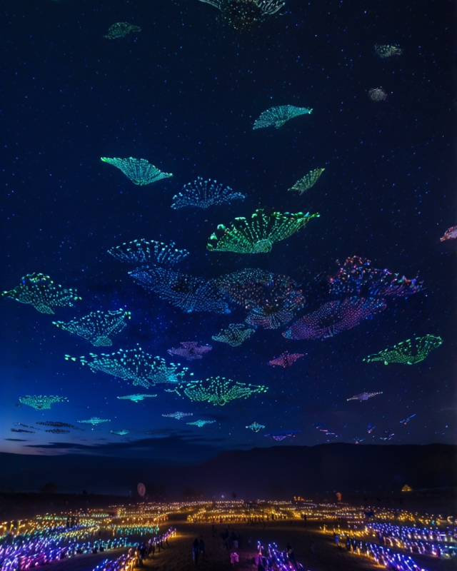 Un show de drones con luces ofrece una experiencia visual única que combina tecnología y arte para crear eventos memorables y de gran impacto. Ya sea para promocionar tu marca, entretener a tus invitados o destacar en la competencia.